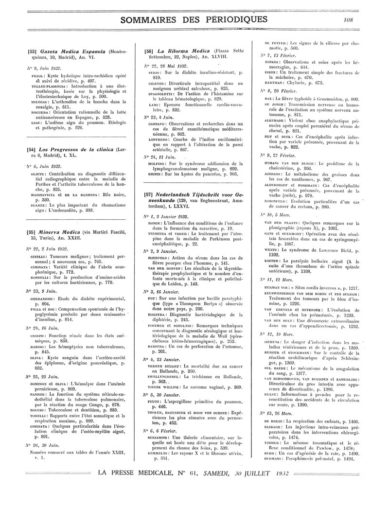 1932, Sommaires des périodiques. -