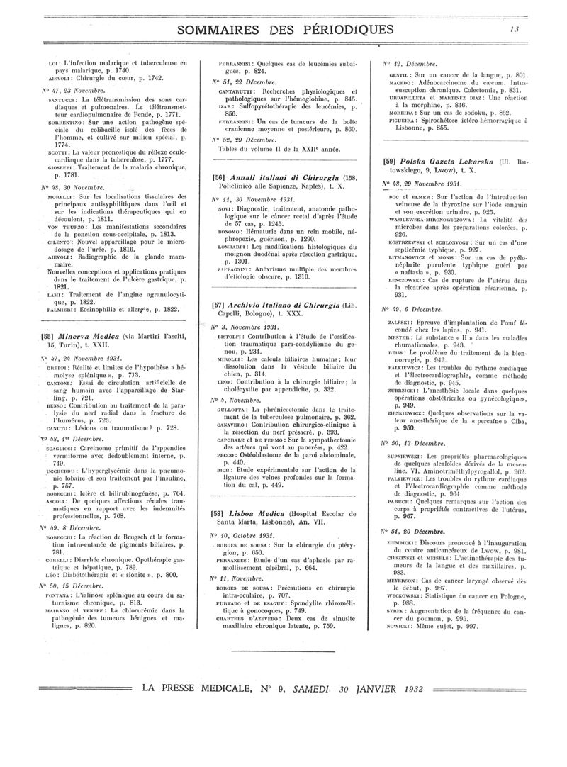 1932, Sommaires des périodiques. -