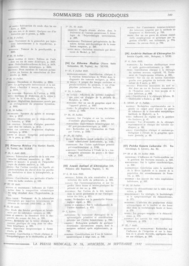 1932, Sommaires des périodiques. -