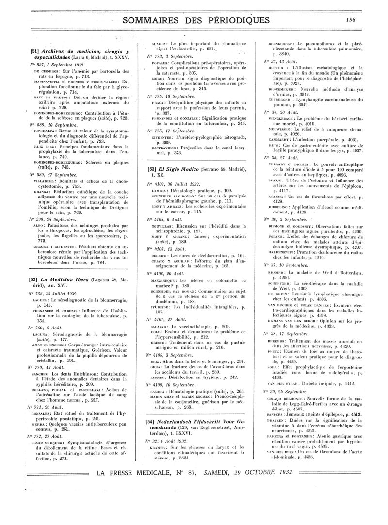 1932, Sommaires des périodiques. -