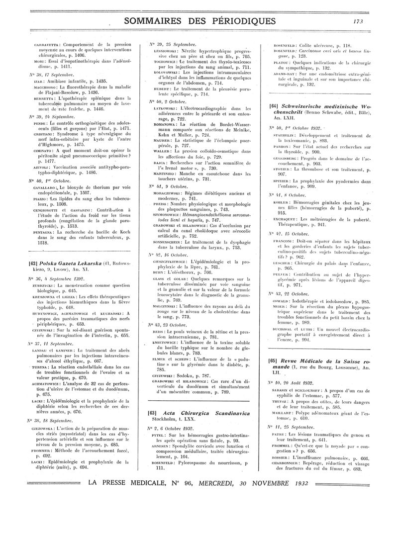 1932, Sommaires des périodiques. -
