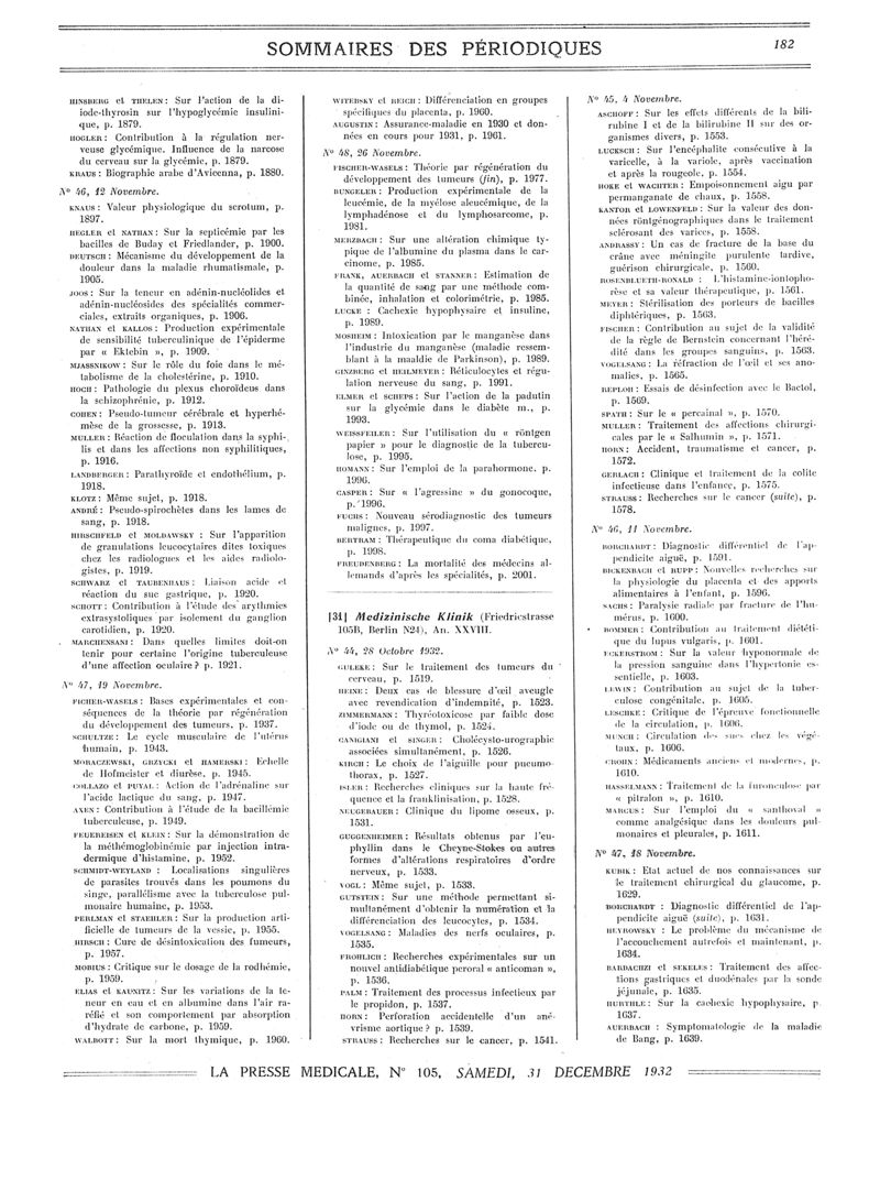1932, Sommaires des périodiques. -