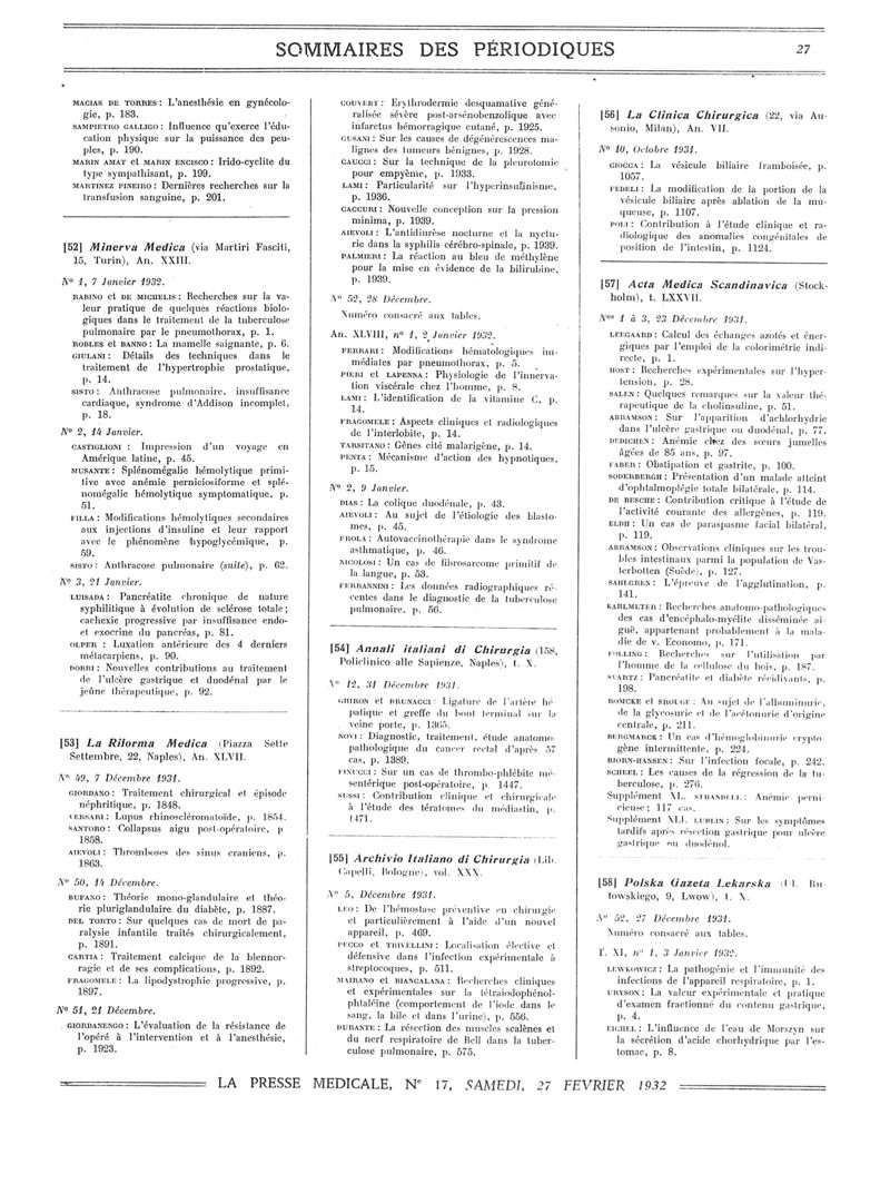 1932, Sommaires des périodiques. -