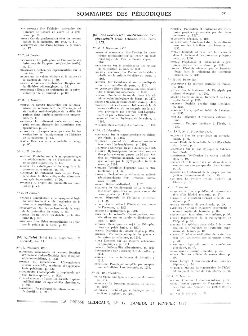 1932, Sommaires des périodiques. -