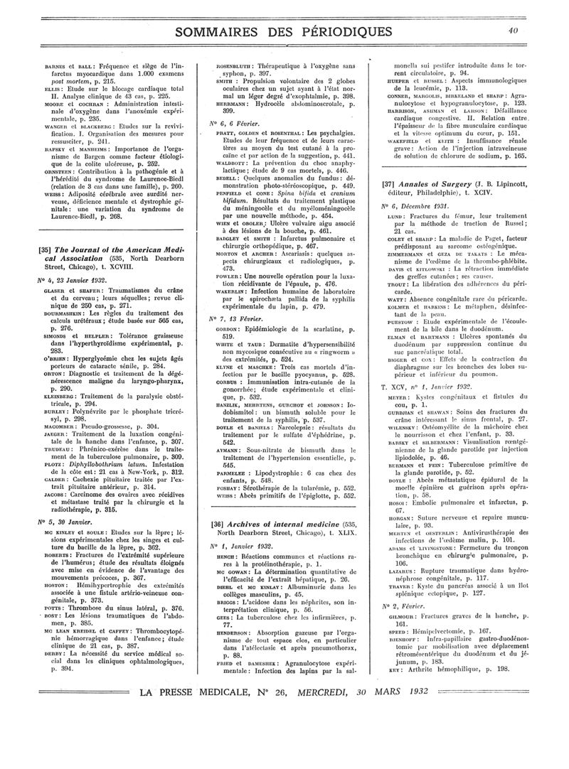 1932, Sommaires des périodiques. -
