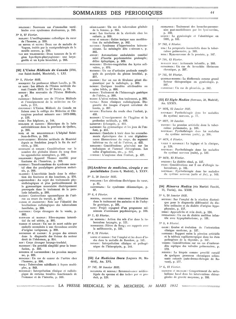 1932, Sommaires des périodiques. -