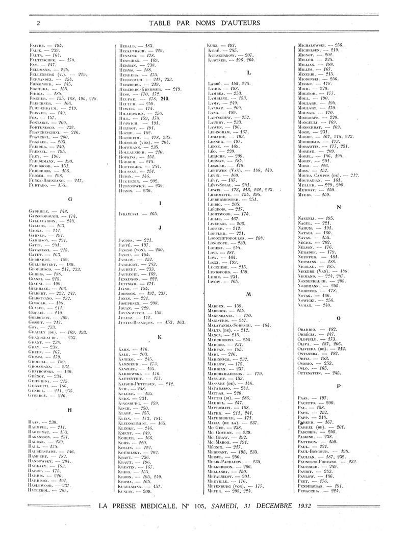 1932, Volume de tables. -