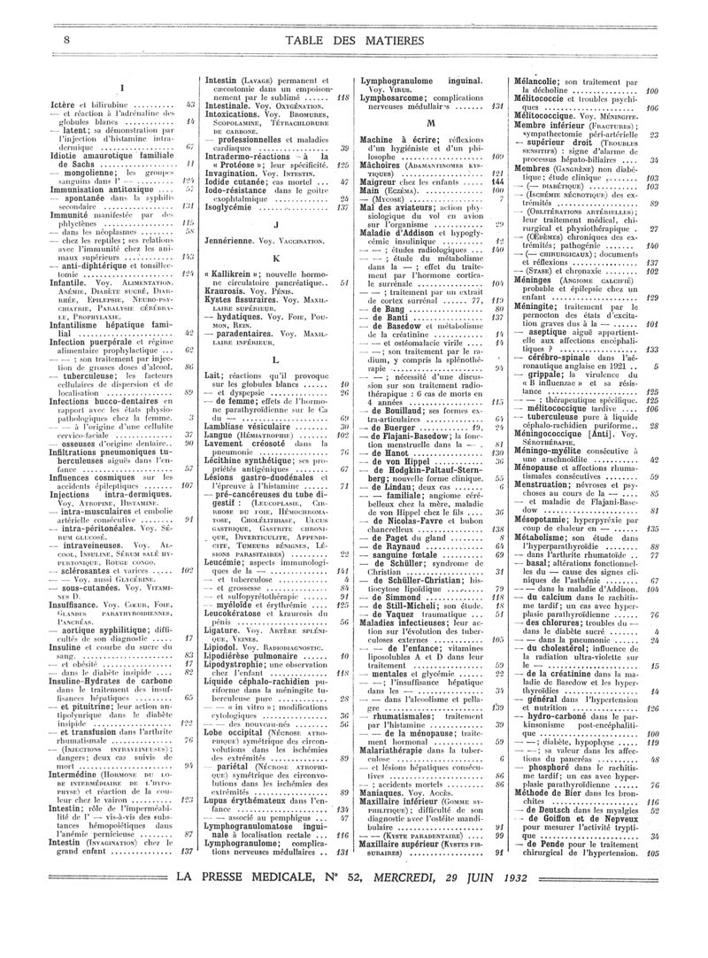 1932, Volume de tables. -