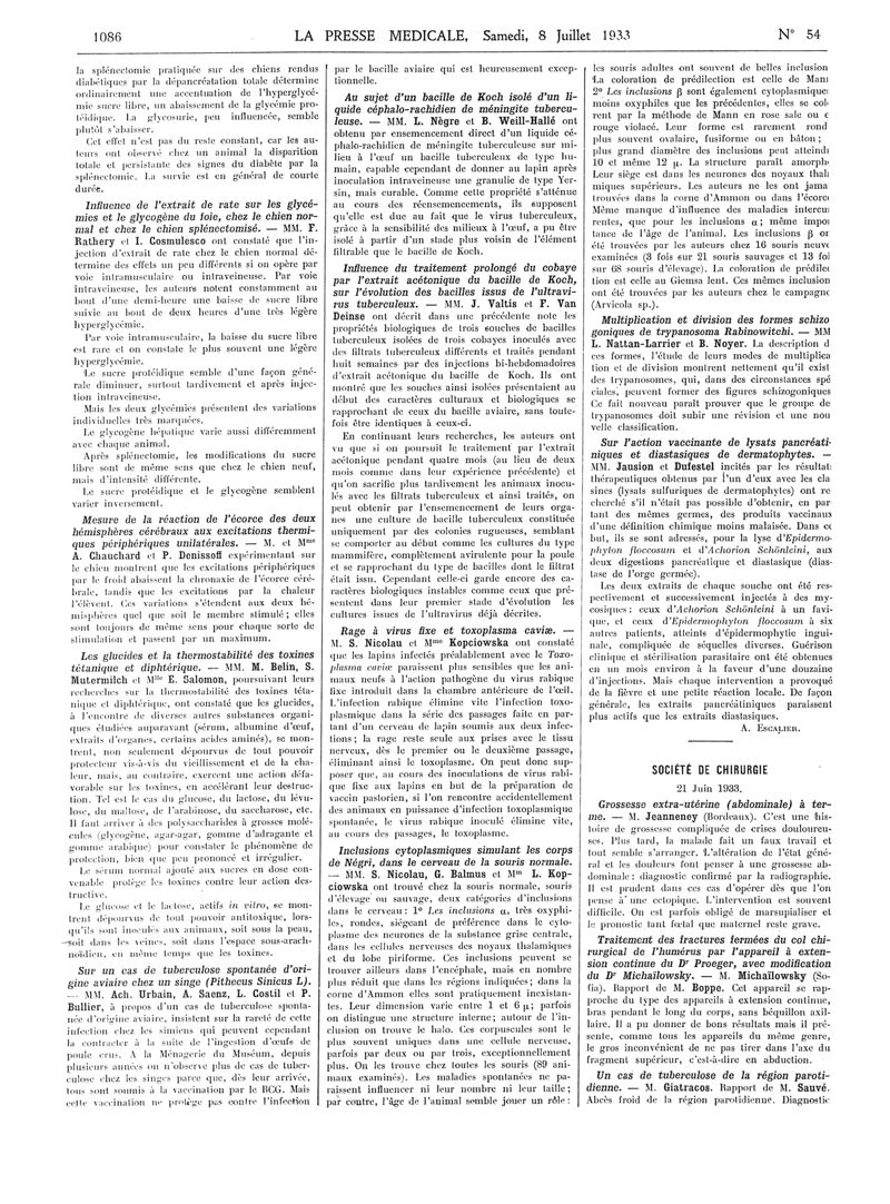 1933, Articles originaux. -