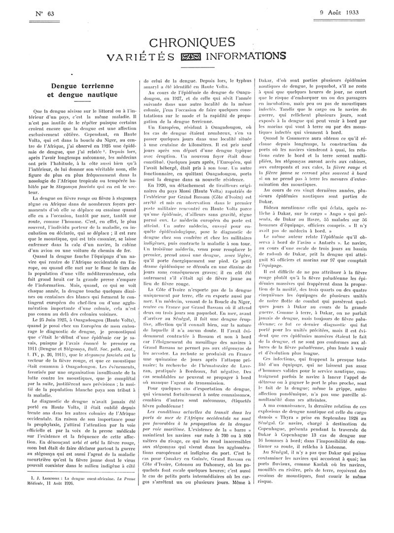 1933, Articles originaux. -