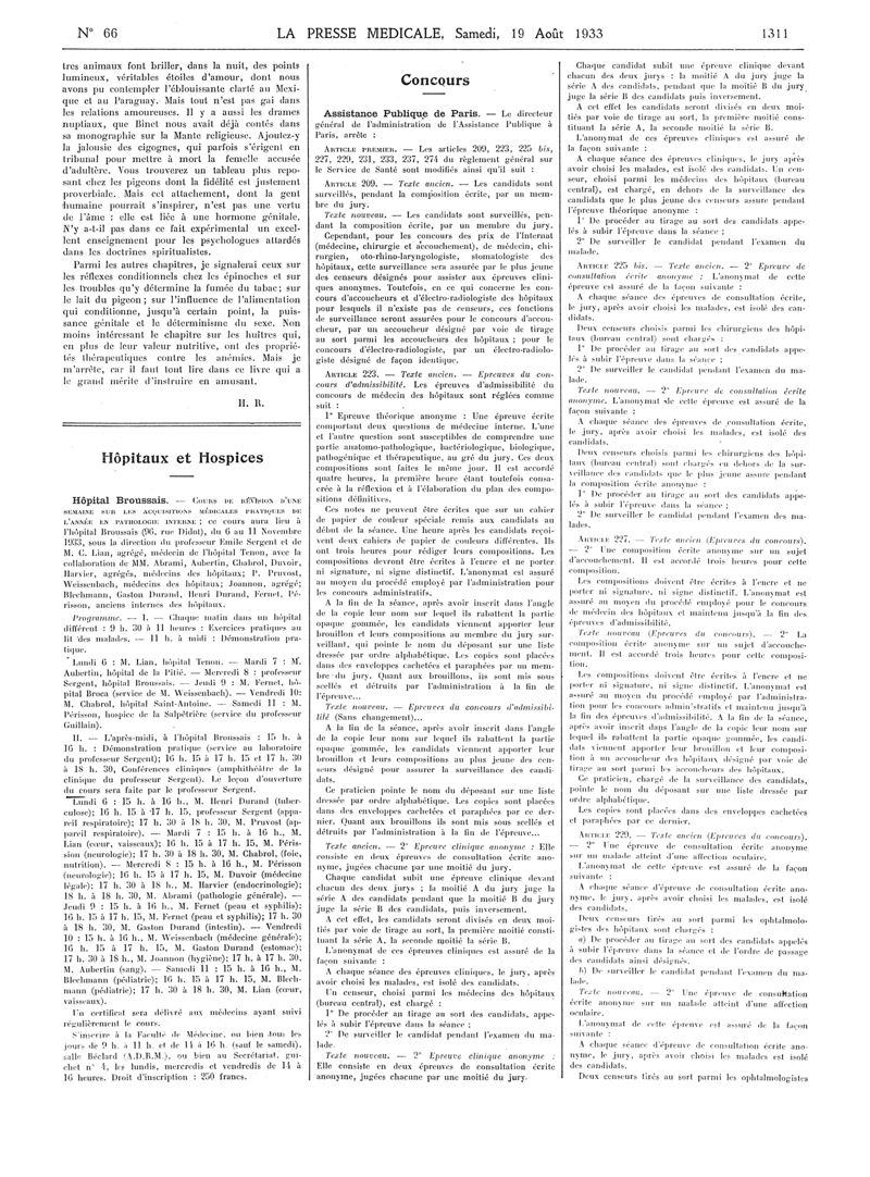 1933, Articles originaux. -