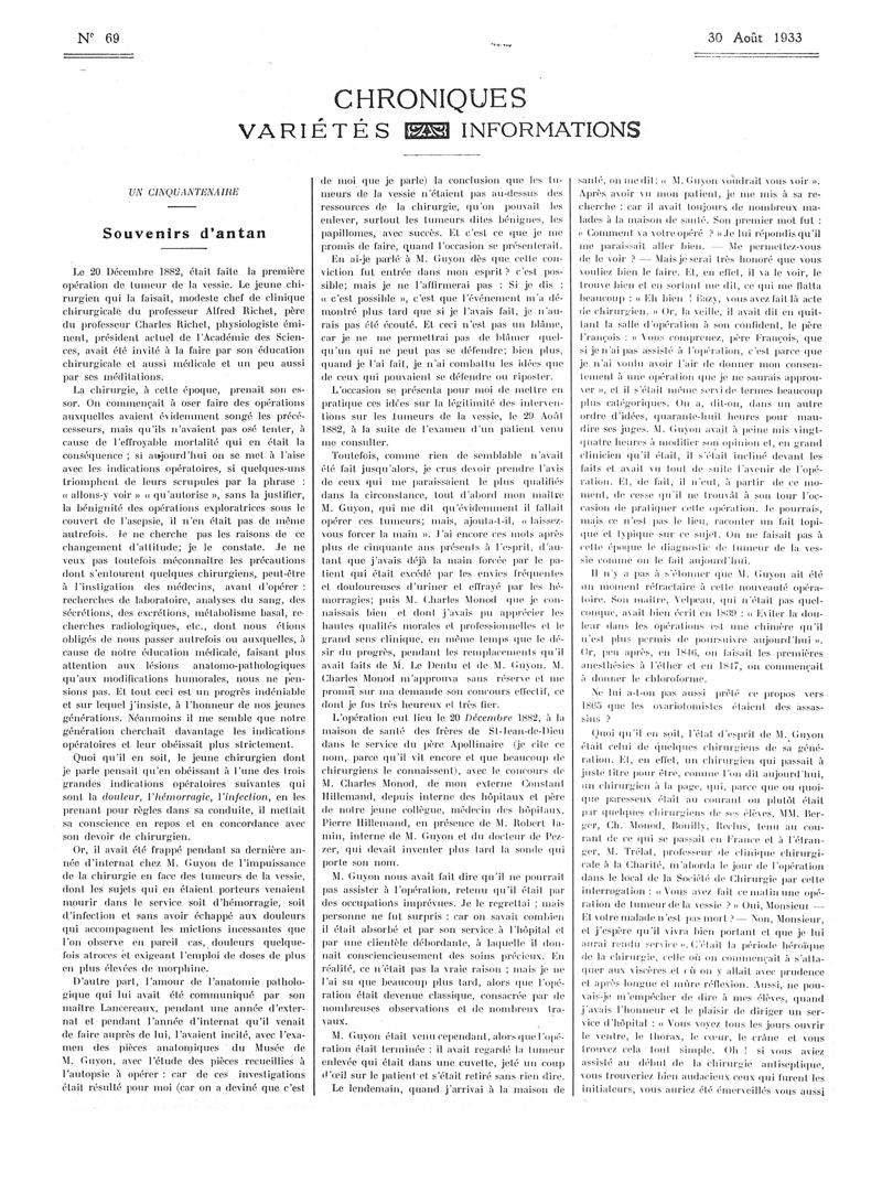 1933, Articles originaux. -