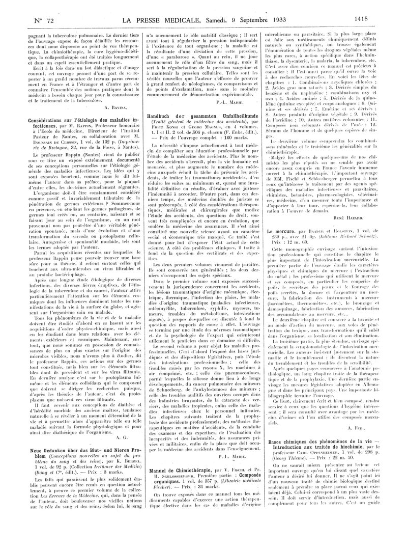 1933, Articles originaux. -