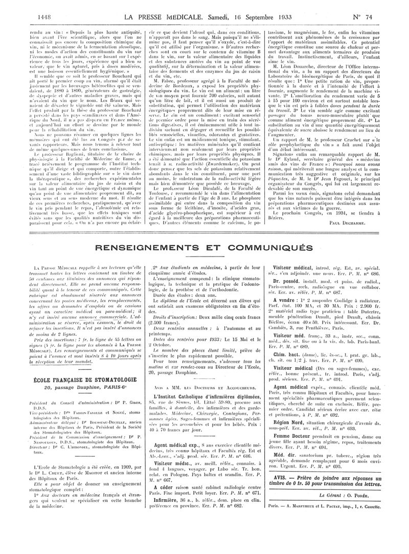 1933, Articles originaux. -