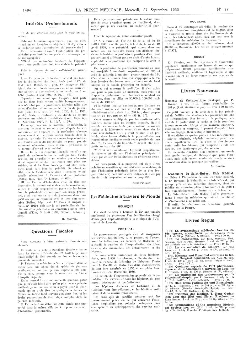 1933, Articles originaux. -
