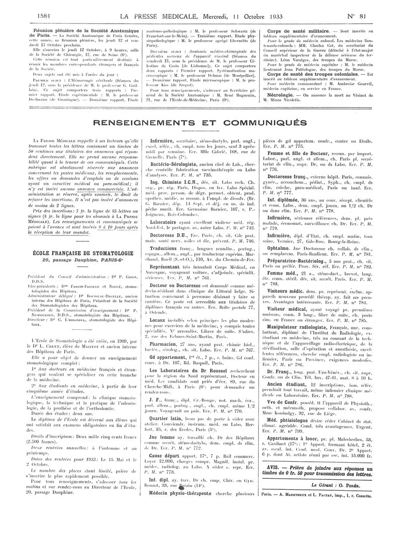 1933, Articles originaux. -