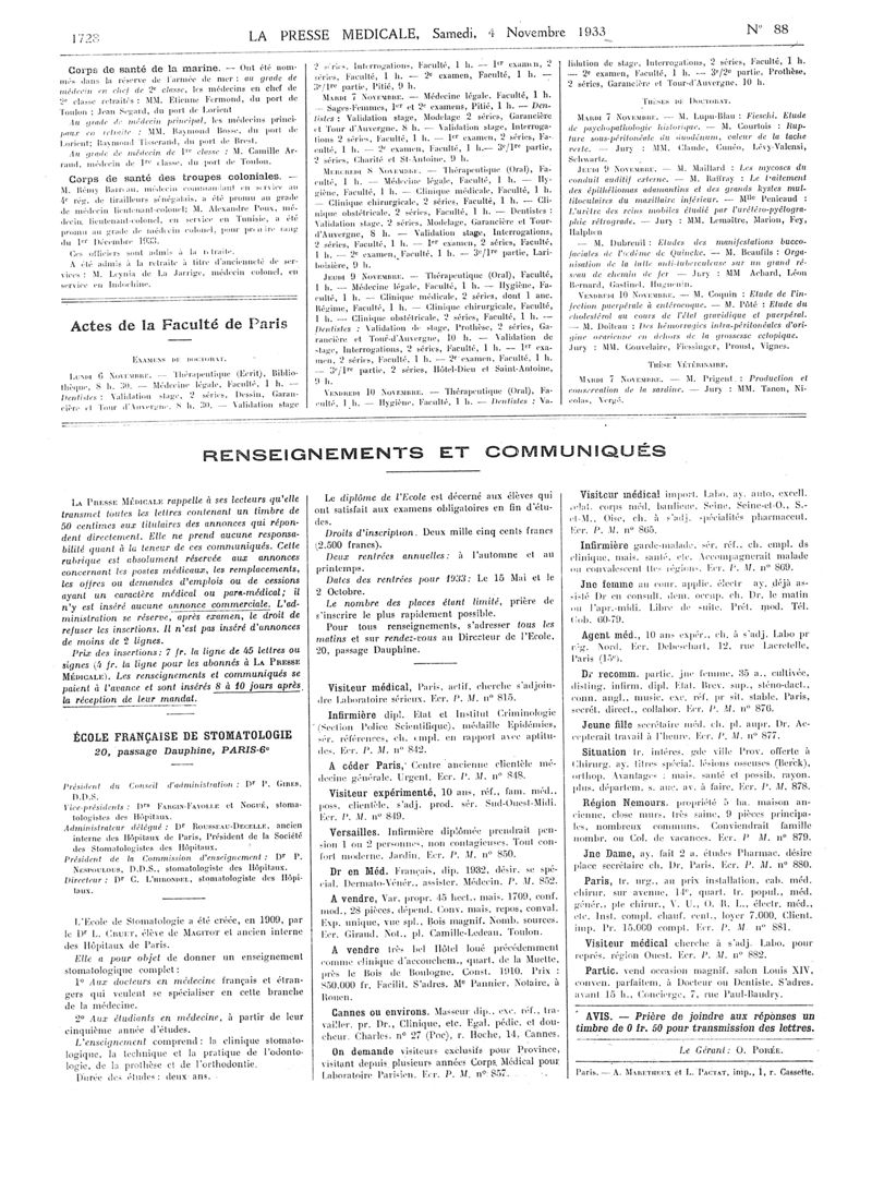 1933, Articles originaux. -