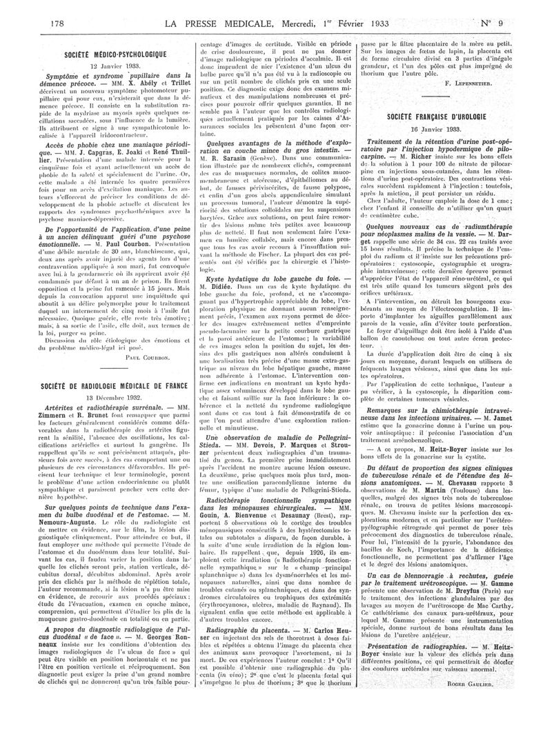1933, Articles originaux. -