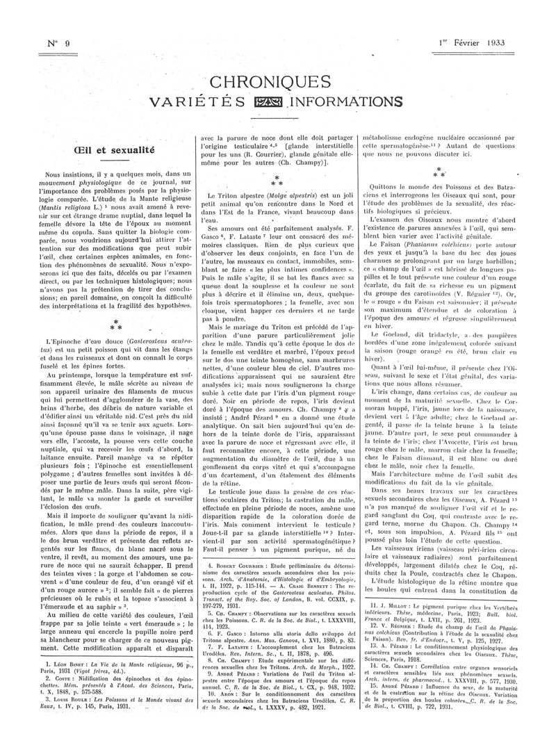 1933, Articles originaux. -