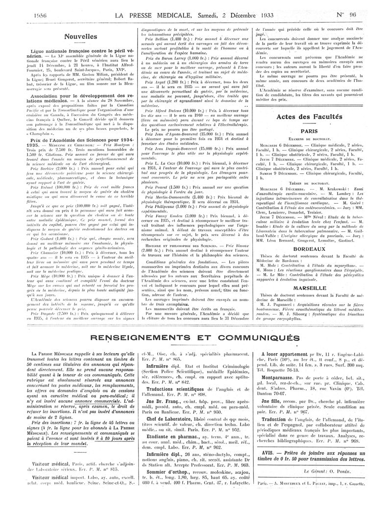 1933, Articles originaux. -