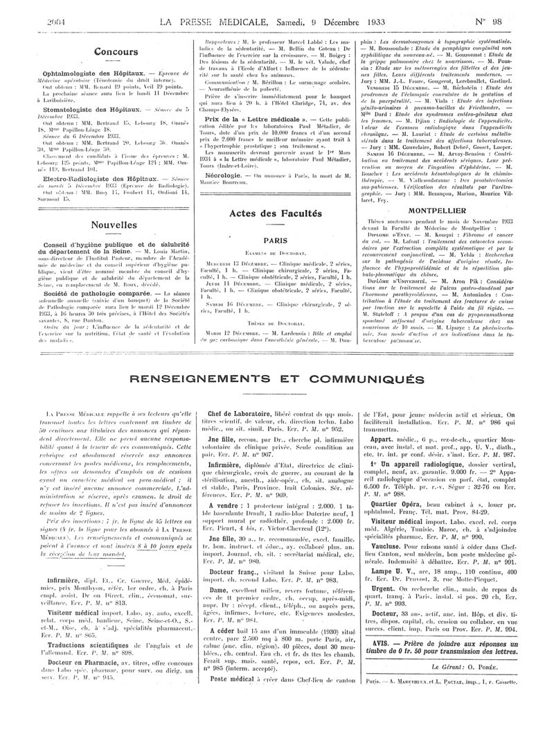 1933, Articles originaux. -