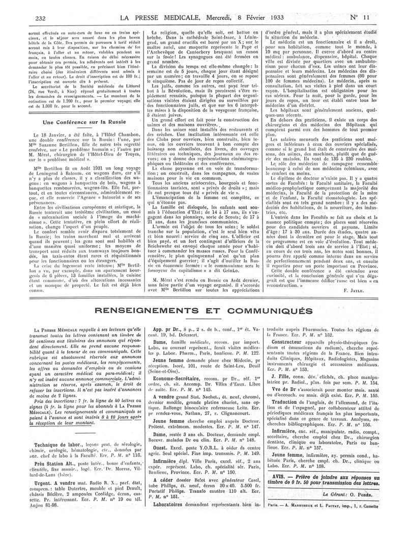 1933, Articles originaux. -