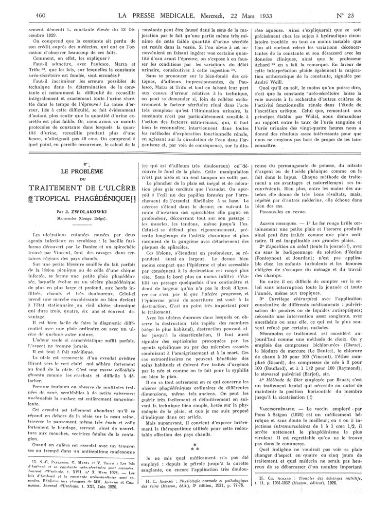1933, Articles originaux. -