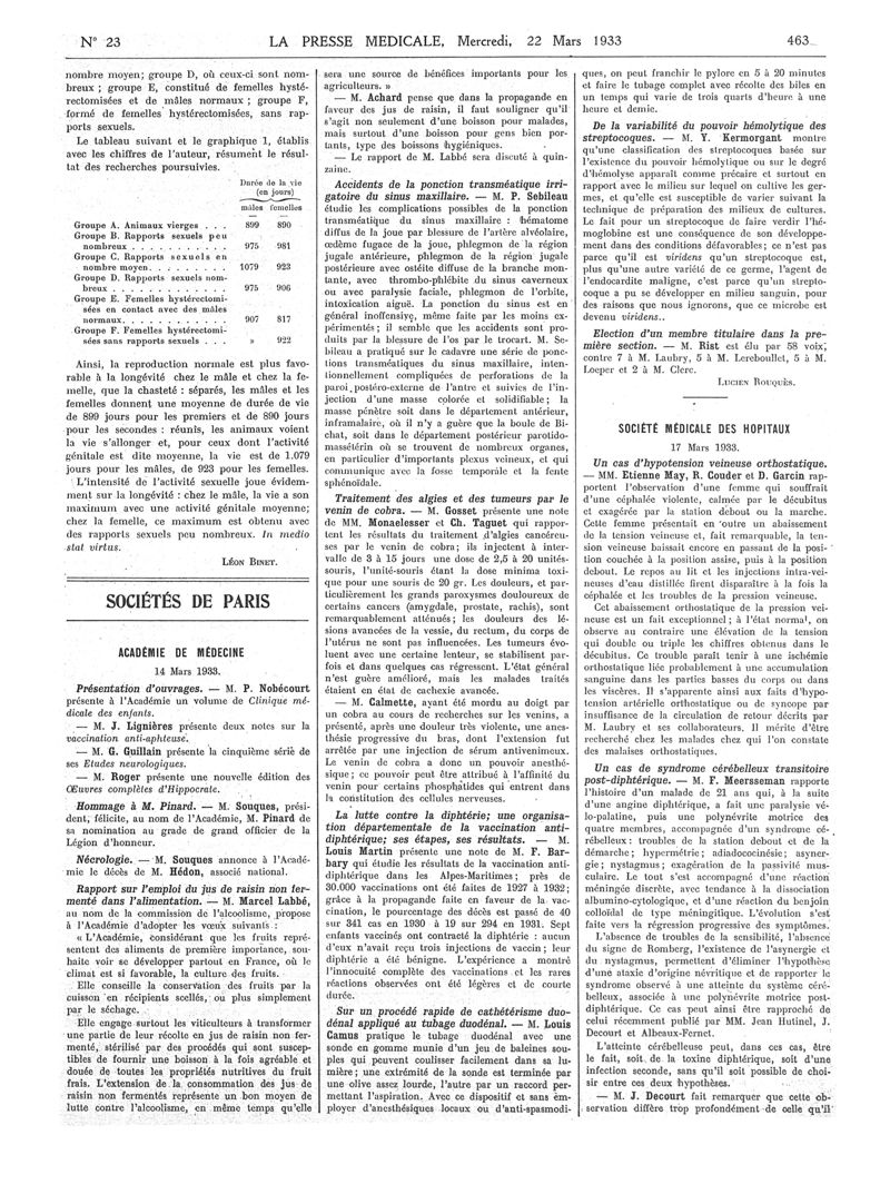 1933, Articles originaux. -