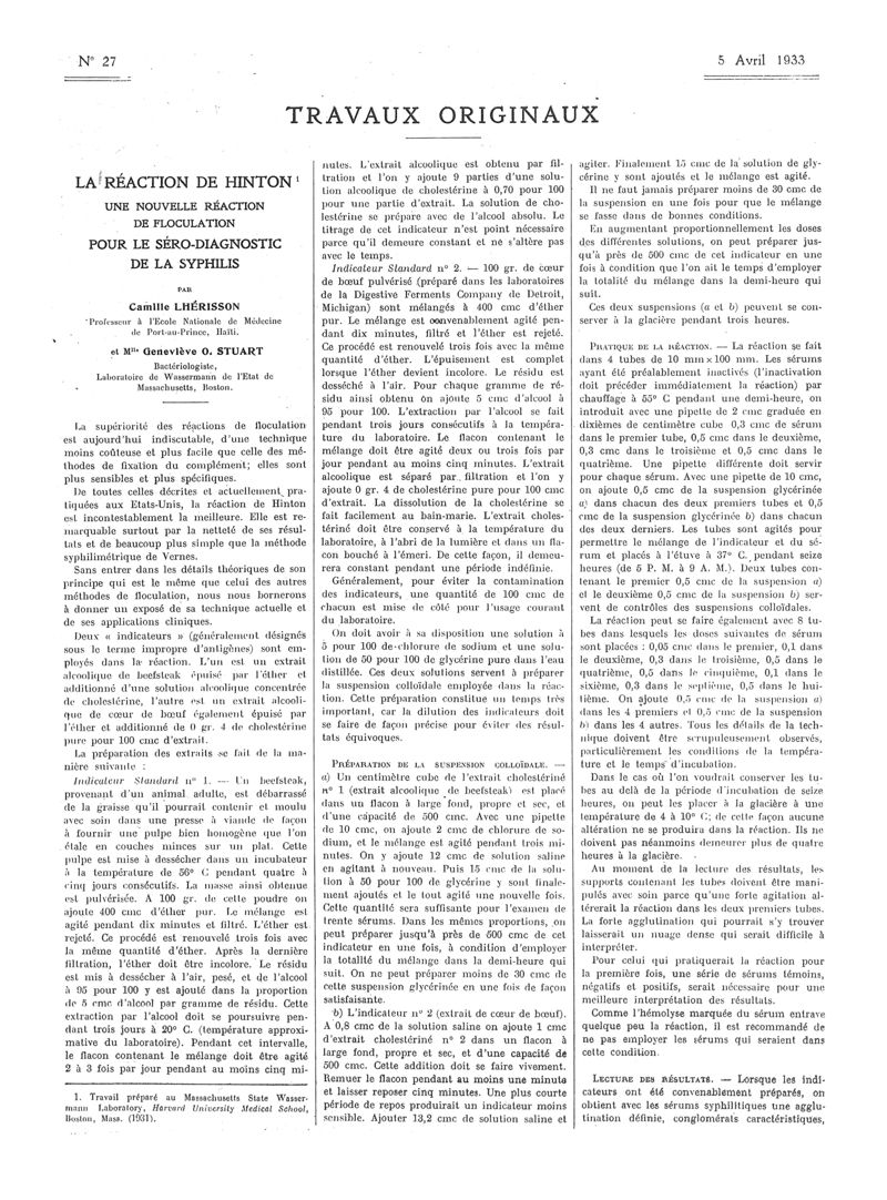 1933, Articles originaux. -