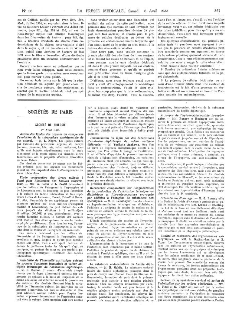 1933, Articles originaux. -