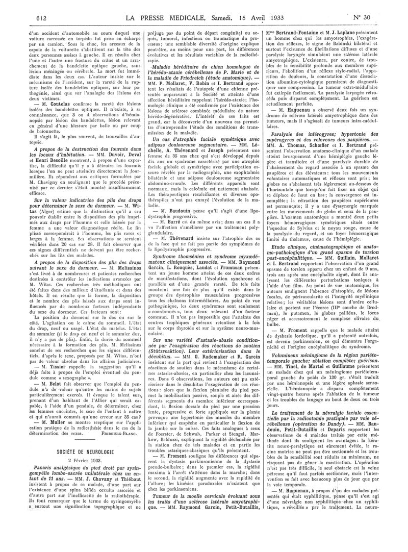 1933, Articles originaux. -