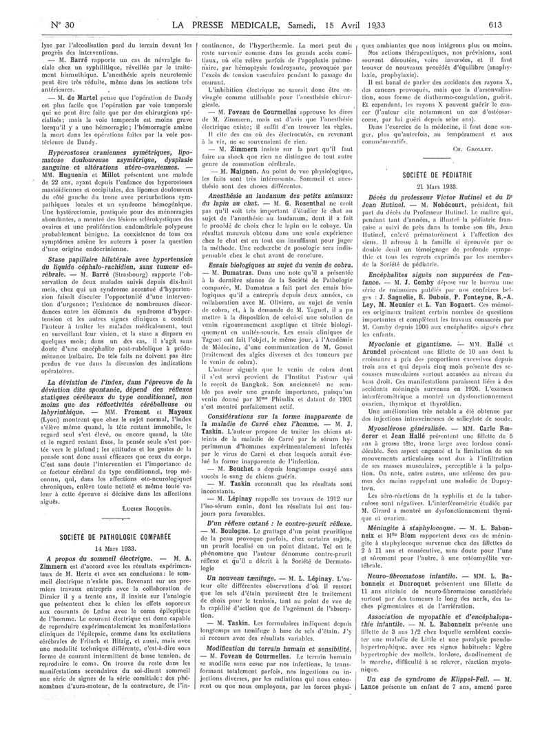 1933, Articles originaux. -