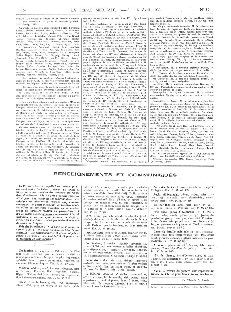 1933, Articles originaux. -