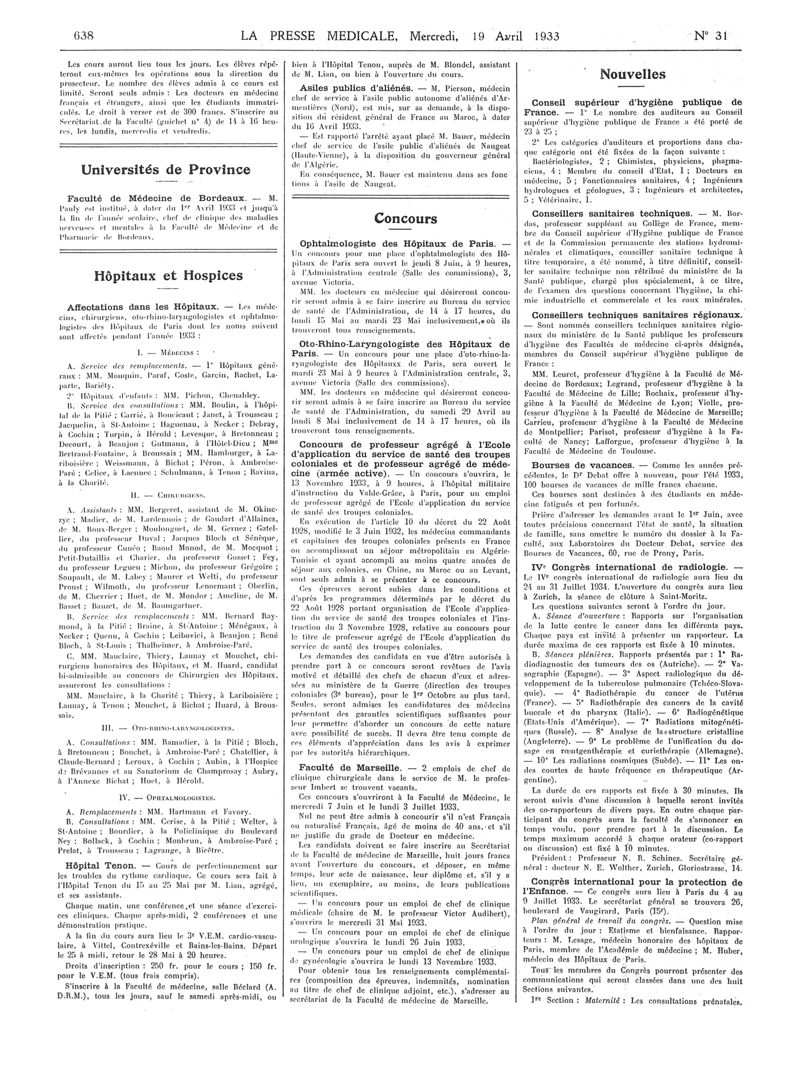1933, Articles originaux. -