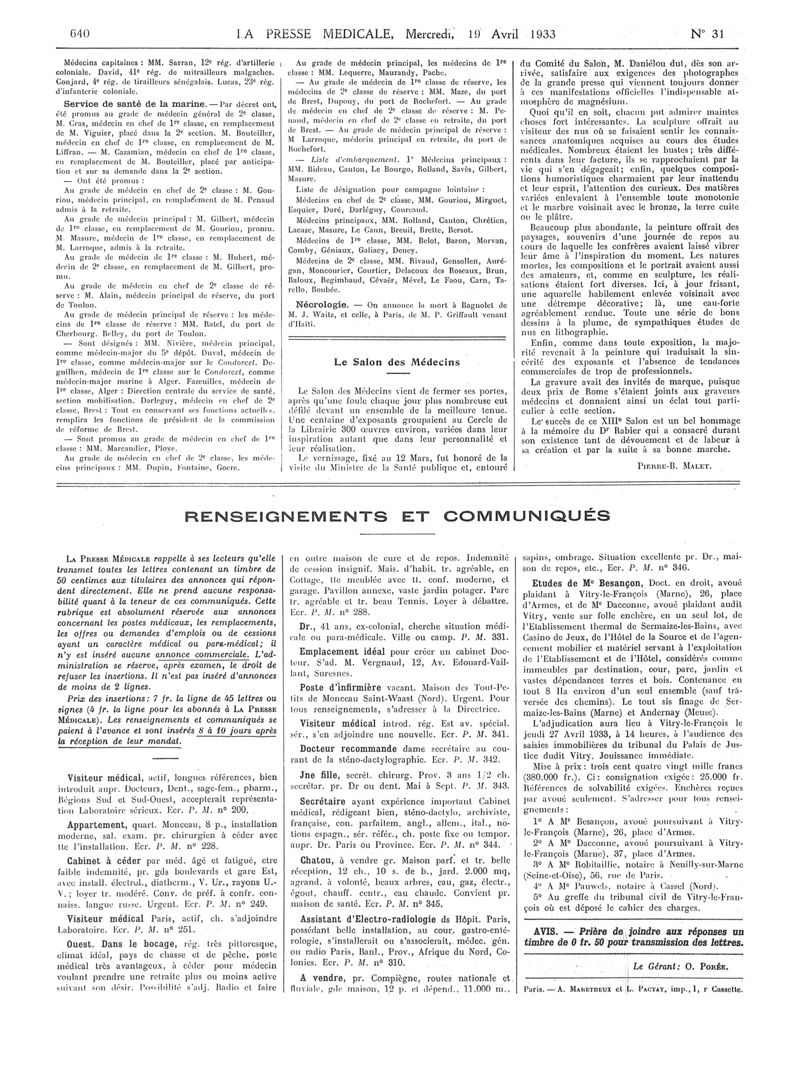 1933, Articles originaux. -