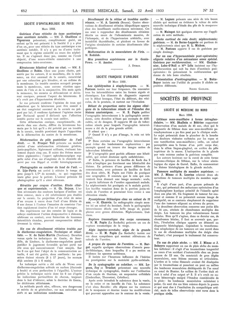 1933, Articles originaux. -