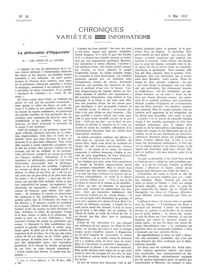 1933, Articles originaux. -