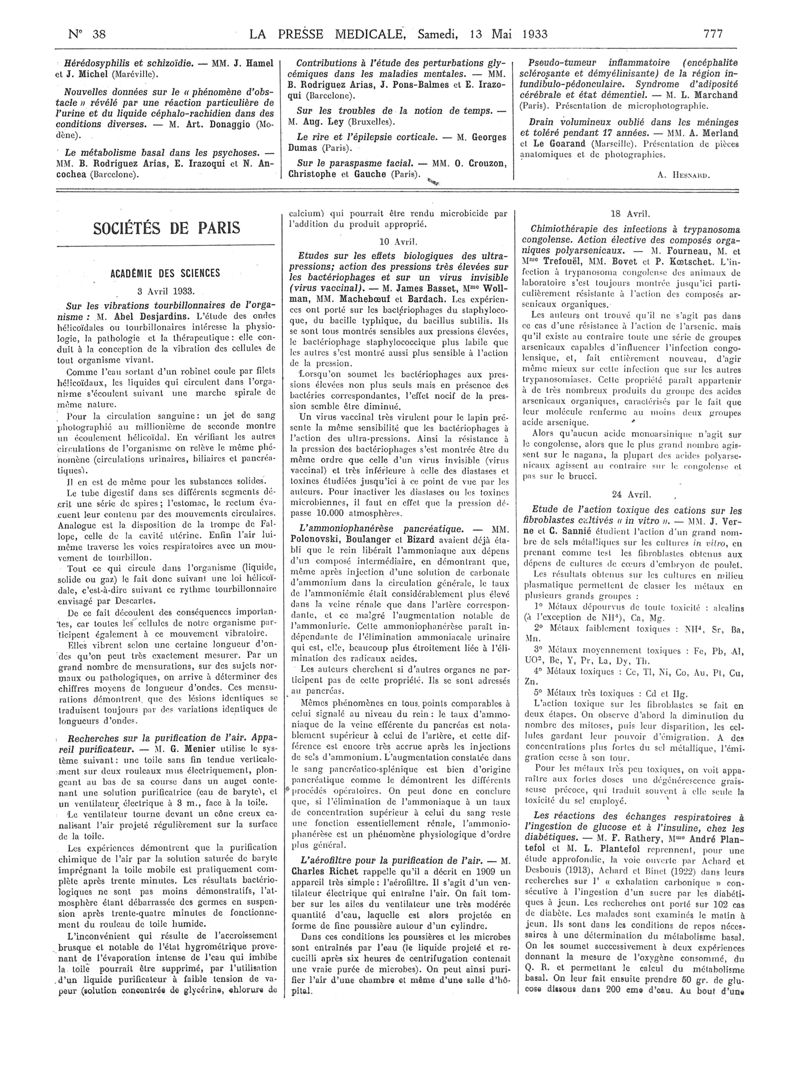 1933, Articles originaux. -