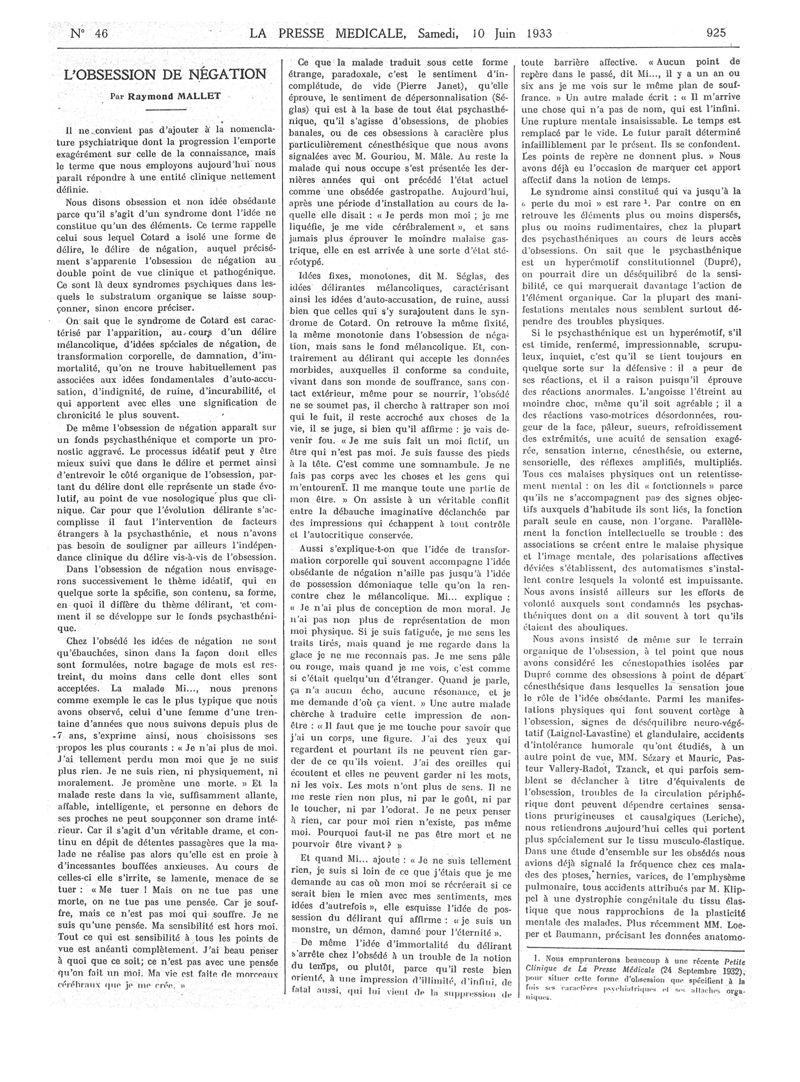 1933, Articles originaux. -