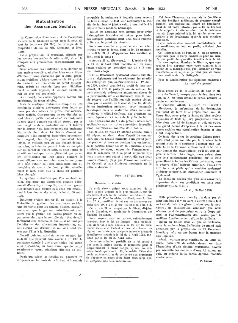1933, Articles originaux. -