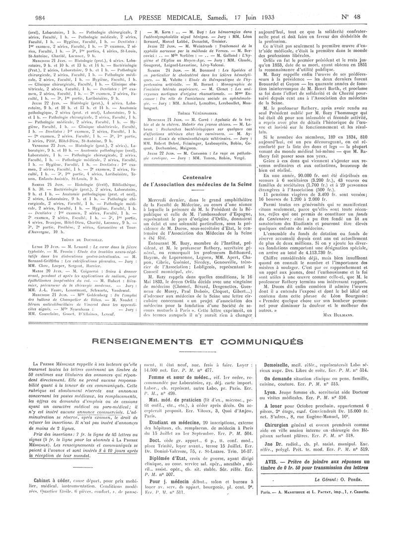 1933, Articles originaux. -