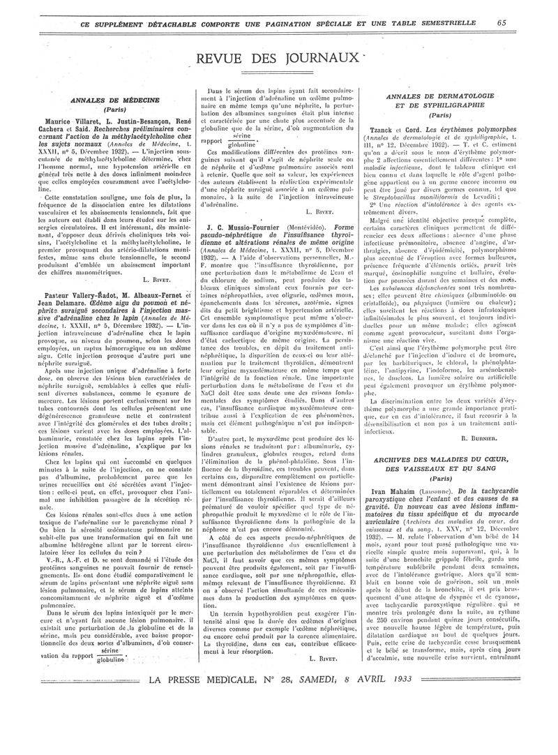 1933, Revue des journaux. -