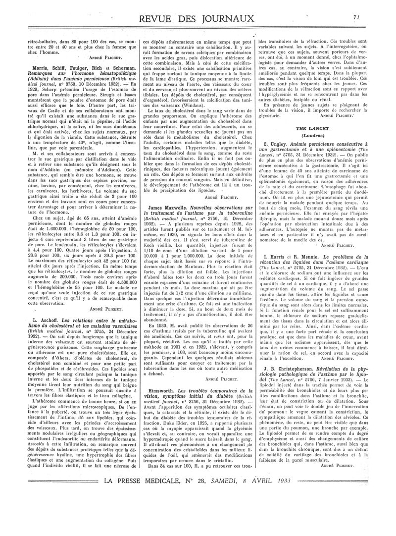 1933, Revue des journaux. -