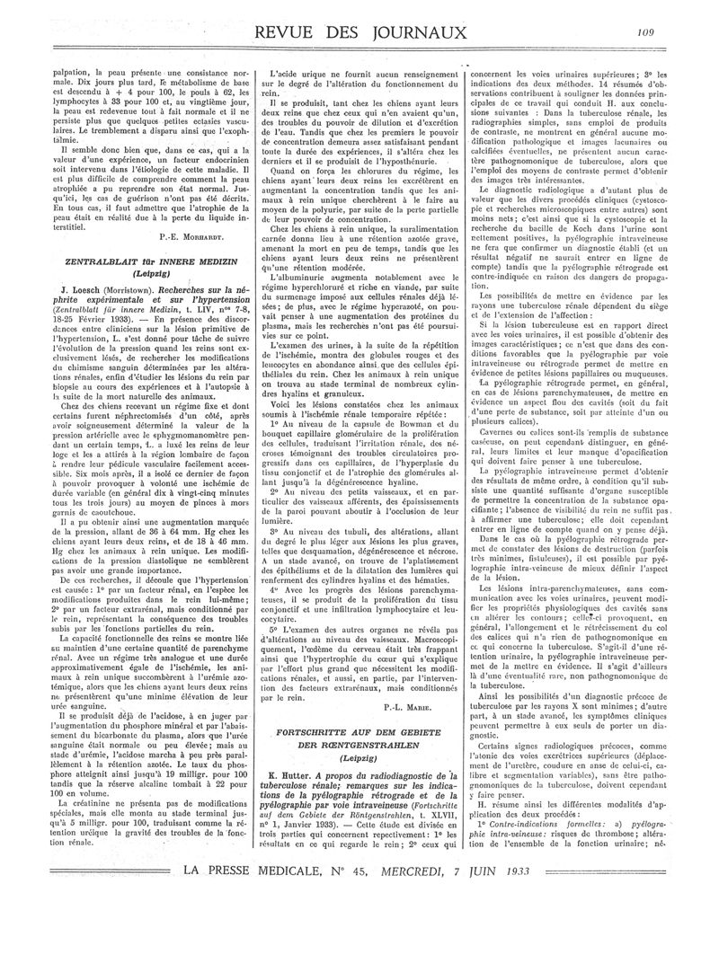 1933, Revue des journaux. -