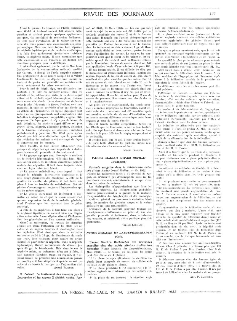 1933, Revue des journaux. -