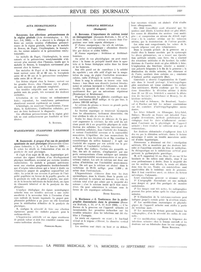 1933, Revue des journaux. -