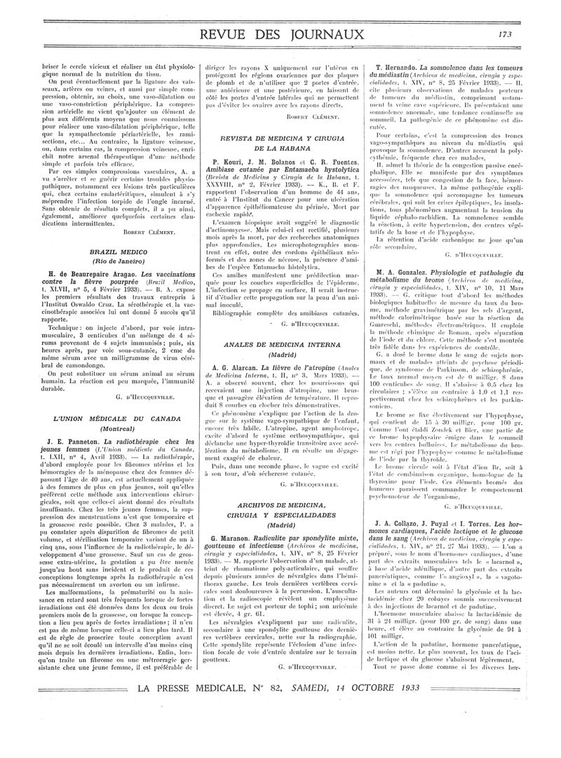 1933, Revue des journaux. -