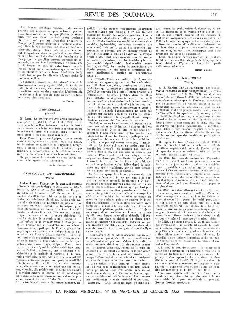 1933, Revue des journaux. -