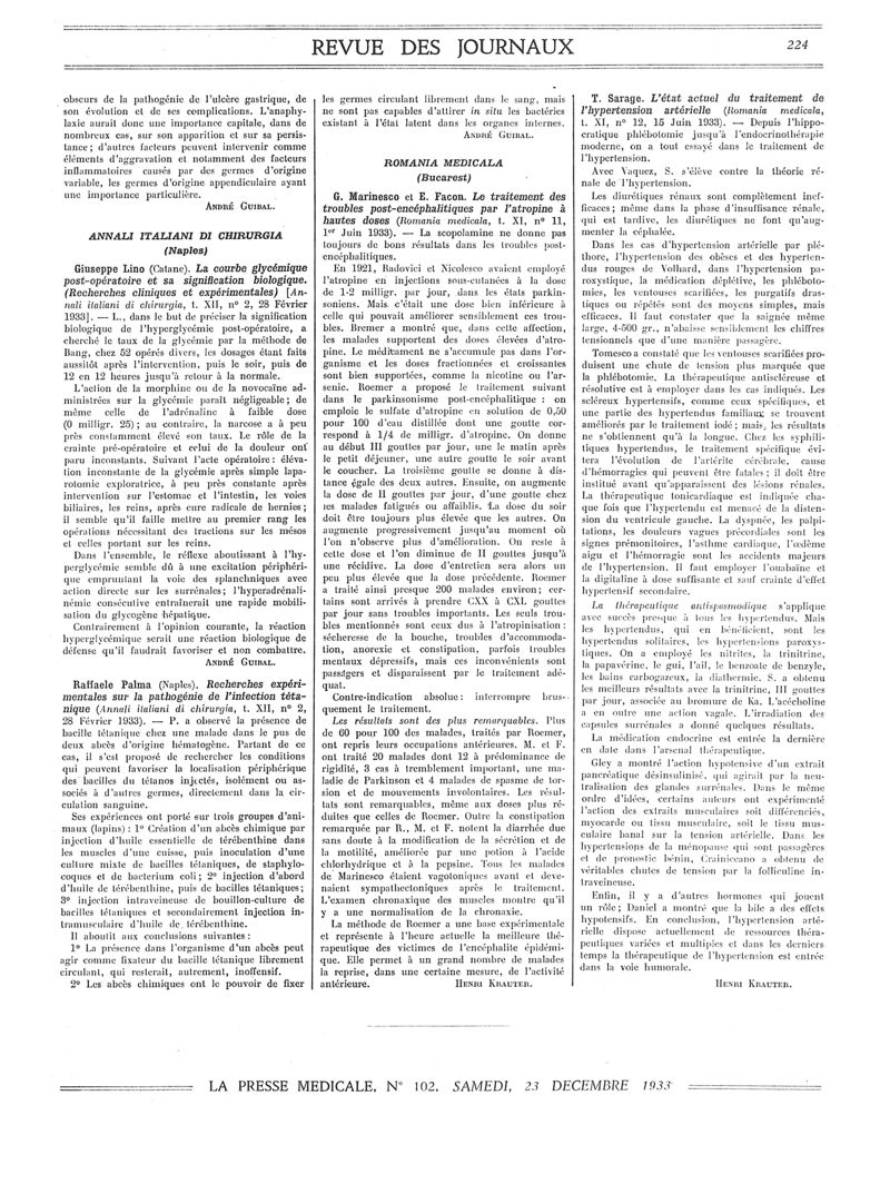 1933, Revue des journaux. -