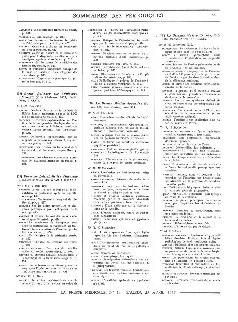 1933, Sommaires des périodiques. -